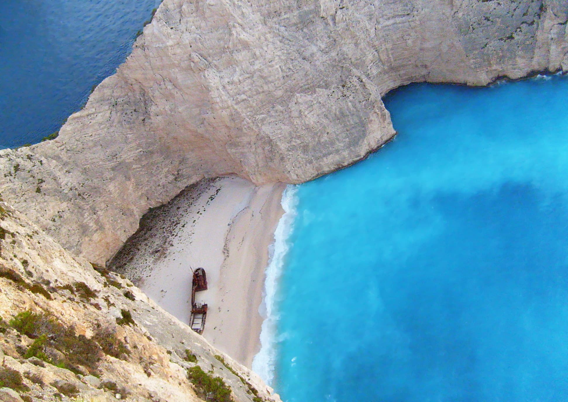 Conocida por la playa del naufragio o "Navagio". Esta postal resume los mil adjetivos que describen las bellezas ocultas griegas emplazadas en la región del Mar Jónico. La isla estuvo habitada por los aqueos hasta que la tomaron los atenienses en el siglo V a.C., a quienes sucedieron los espartanos, macedonios, romanos y bizantinos. Los venecianos la gobernaron de 1484 hasta 1797 y la isla se unió por fin a Grecia en 1864.