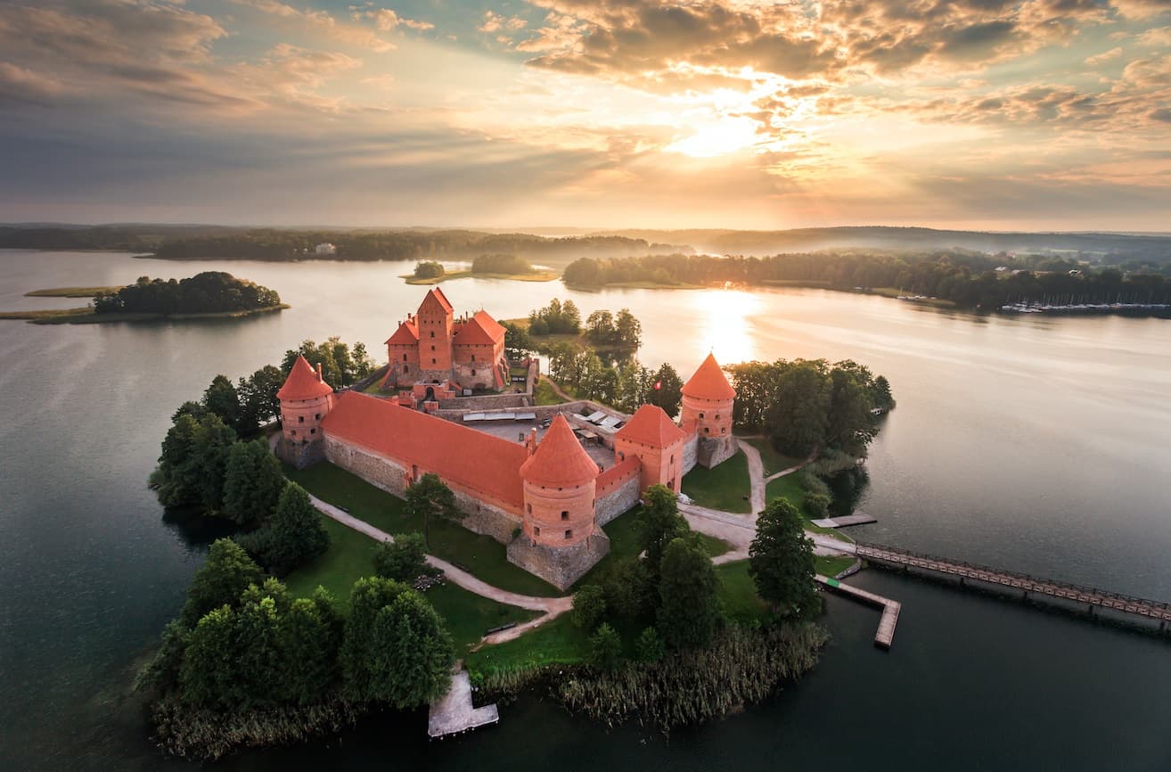 Desayuno en el hotel. Vilna es conocida por su hermosa arquitectura, Patrimonio de la Humanidad. Recorreremos la catedral, la universidad y la iglesia de San Pedro y San Pablo. Visitaremos Trakai, la antigua capital de Letonia, popular por su ubicación entre espectaculares bosques y lagos. Visita por la ciudad medieval y el castillo de Trakai, convertido en museo nacional de historia (por razones operativas se podría cambiar esta visita al día posterior). Continuación hacia Klaipeda, la tercera ciudad más grande de Lituania y su principal puerto marítimo, con un casco antiguo de aire alemán, calles adoquinadas y una animada vida cultural.