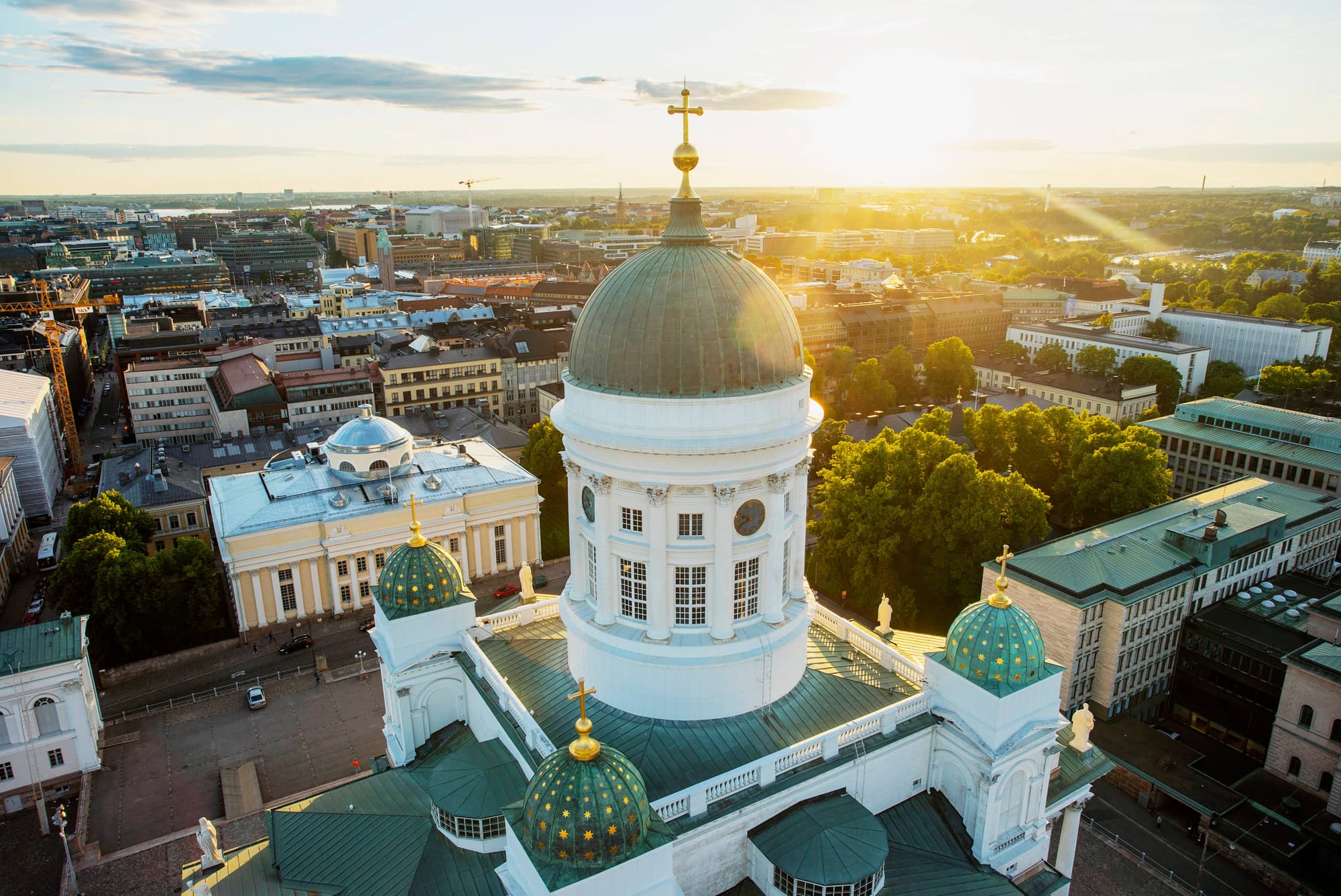 Desayuno a bordo. Tras desembarcar en la capital de Finlandia, Helsinki, visita panorámica pasando por la elegante avenida Esplanadi, el palacio de congresos, la casa Finlandia de Alvar Aalto, el colorido mercado del puerto, la plaza del Senado, la catedral, el monumento a Sibelius y la iglesia de roca. Tarde libre.