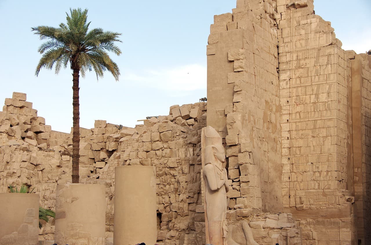Una visita al Banco Este en Luxor; a los Templos de Luxor y Karnak. Una visita al Banco Oeste en Luxor; a la Necrópolis de Tebas; al Valle de los Reyes, al Templo Funerario de la Reina Hatshepsut conocido como el Deir el Bahari, y a los Colosos de Memnon. A la hora prevista zarparemos hacia Esna. Cruzaremos la Esclusa de Esna y continuaremos la navegación hacia Edfu. Noche a bordo.