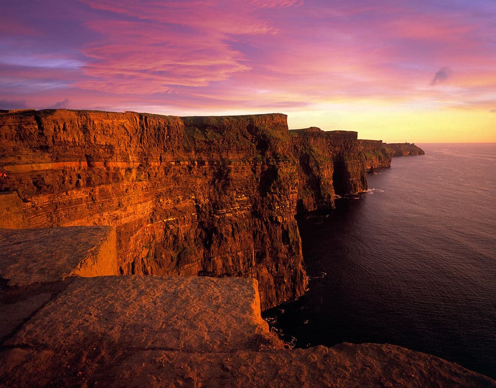 Explora Galway, la Ciudad de las Tribus, y luego viaja al condado de Clare y a la ruta costera de Black Head. Admira el paisaje lunar del Burren y los mundialmente famosos acantilados de Moher.